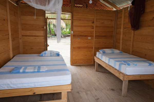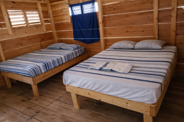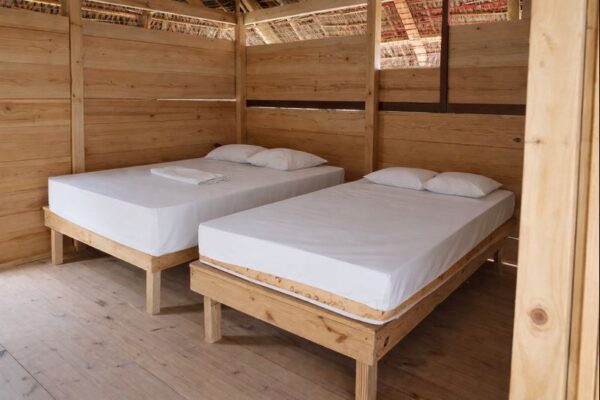 During your stay, you will sleep in a rustic cabin with shared bathrooms, offering a simple and authentic island experience. This is ideal for travelers who want to disconnect from the city and enjoy nature at a great price.